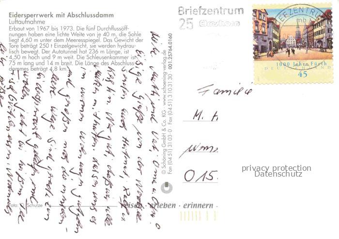 74037944 alte Postkarte Toenning Nordseebad Eidersperrwerk mit Abschlussdamm postalisch gelaufen Fliegeraufnahme Erhaltung siehe scans [FriedD77] KatCode: 11110001054138