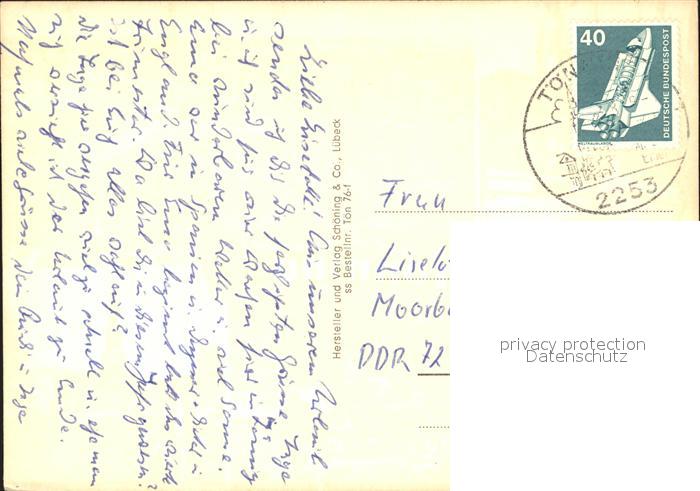 72052837 alte Postkarte Toenning Nordseebad Fischkutter Kirche Fliegeraufnahme postalisch gelaufen Erhaltung siehe scans KatCode: 11110001054138