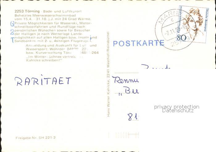 72425863 alte Postkarte Toenning Nordseebad Fliegeraufnahme postalisch gelaufen Erhaltung siehe scans KatCode: 11110001054138