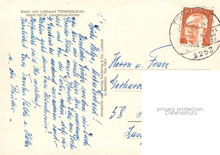 72950715 alte Postkarte Toenning Nordseebad Markt mit St Laurentius Kirche postalisch gelaufen Erhaltung siehe scans [WerneD78] KatCode: 11110001054138