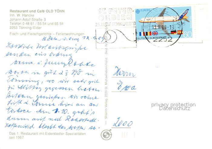 73324307 alte Postkarte Toenning Nordseebad Restaurant Cafe Old Toenn postalisch gelaufen Erhaltung siehe scans [FriedD77] KatCode: 11110001054138