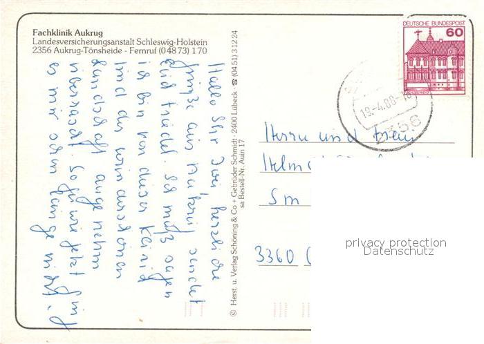 72947259 alte Postkarte Toensheide Fachklinik Aukrug postalisch gelaufen Erhaltung siehe scans [LiesaD40] KatCode: 11110001058009