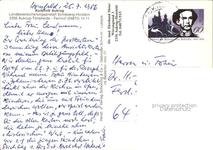 72513466 alte Postkarte Toensheide Kurklinik Aukrug postalisch gelaufen Erhaltung siehe scans KatCode: 11110001058009