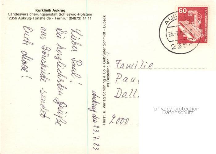 73100991 alte Postkarte Toensheide Kurklinik Aukrug LVA Schleswig Holstein Details postalisch gelaufen Erhaltung siehe scans [WerneD78] KatCode: 11110001058009
