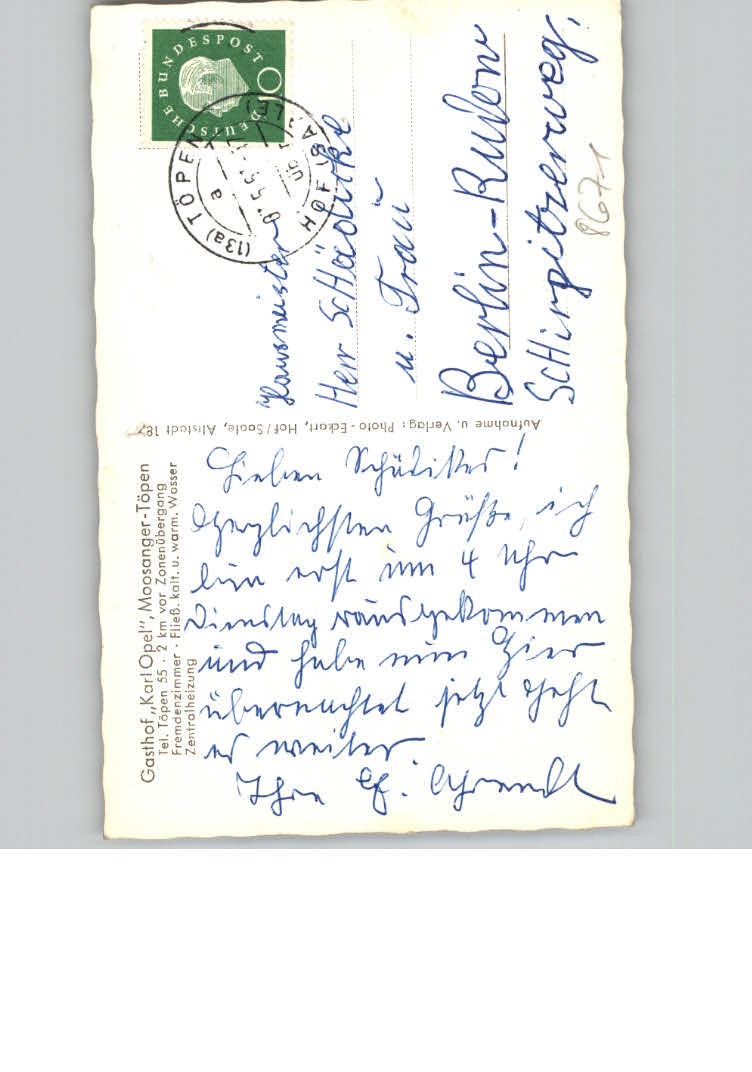 31169810 Toepen Gasthof Karl Opel postalisch nicht gelaufen KatCode: 11110009475181