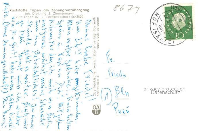 43352271 alte Postkarte Toepen Raststaette Toepen Grenzuebergang DDR Zollabfertigung postalisch gelaufen Erhaltung siehe scans [WerneD78] KatCode: 11110009475181
