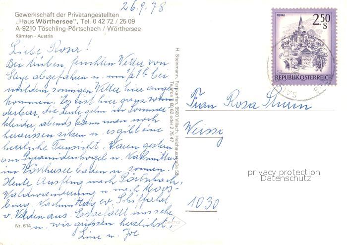 73285132 alte Postkarte Toeschling Poertschach Woerthersee Fliegeraufnahme Haus Woerthersee postalisch gelaufen Erhaltung siehe scans [NatalD47] KatCode: 11390211020435