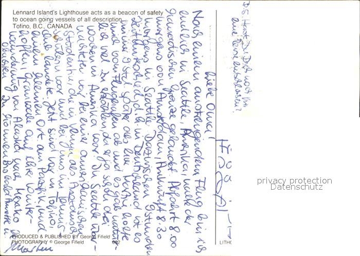 Tofino Lennard Island s Lighthouse Mountains postalisch nicht gelaufen Erhaltung siehe scans