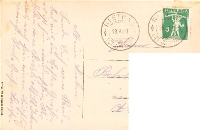 13959514 alte Postkarte Toggenburg SG Panorama Kuranstalt Rietbad Alpen postalisch gelaufen Erhaltung siehe scans [FriedD77] KatCode: 11470190585844