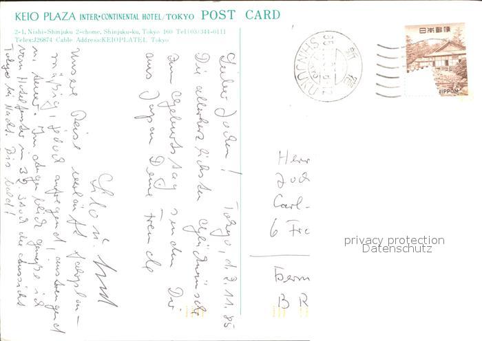 old postcard Tokyo Hotel Klio Plaza postalisch gelaufen Erhaltung siehe scans