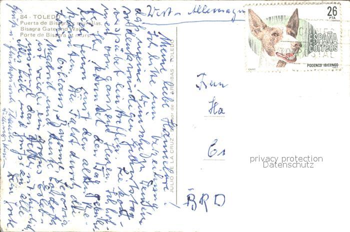 old postcard Toledo Castilla-La Mancha Puerta de Bisagra y murallas postalisch gelaufen Erhaltung siehe scans