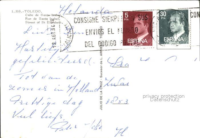 old postcard Toledo Castilla-La Mancha Street St Elizabeth postalisch gelaufen Erhaltung siehe scans