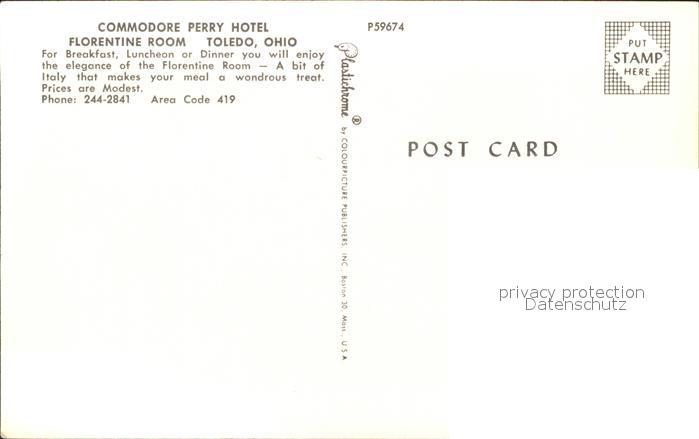 71966191 Toledo Ohio Commodore Perry Hotel Florentine Room postalisch nicht gelaufen Erhaltung siehe scans KatCode: 14140370000000