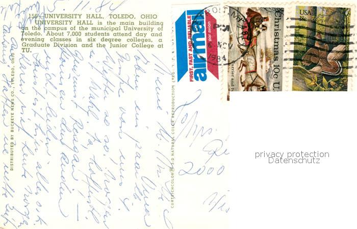 73130577 old postcard Toledo Ohio University Hall postalisch gelaufen Erhaltung siehe scans [KathaD81] KatCode: 14140370000000