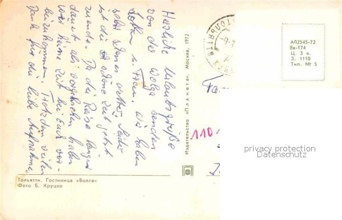 old postcard Toljatti Hotel Wolga postalisch gelaufen Erhaltung siehe scans [NatalD47]