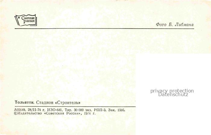 74020274 Toljatti Stadion Strojitel postalisch nicht gelaufen Erhaltung siehe scans [IrynaD87] KatCode: 11440