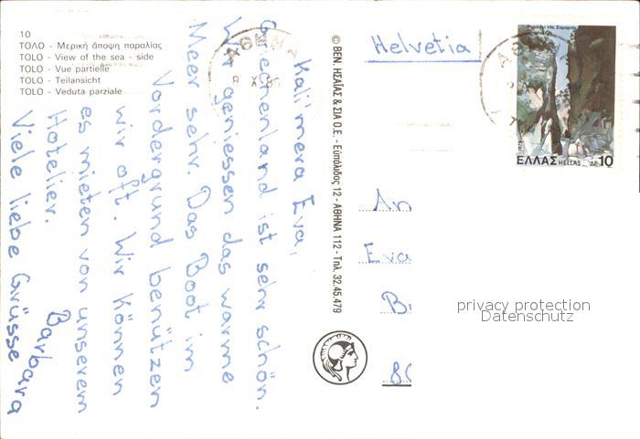 old postcard Tolo Tolon Ansicht vom Meer aus postalisch gelaufen Erhaltung siehe scans