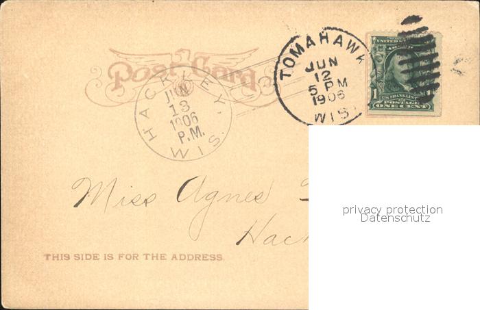 41945113 old postcard Tomahawk Wisconsin Wisconsin Ave on a Quiet Sunday Morning postalisch gelaufen Erhaltung siehe scans KatCode: 14140520000000