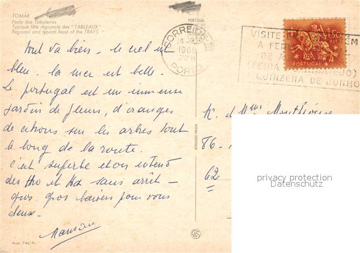 old postcard Tomar Festa dos Tabuleiros postalisch gelaufen Erhaltung siehe scans [LiesaD40]
