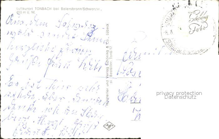 72175703 alte Postkarte Tonbach postalisch gelaufen Erhaltung siehe scans KatCode: 11110008237004