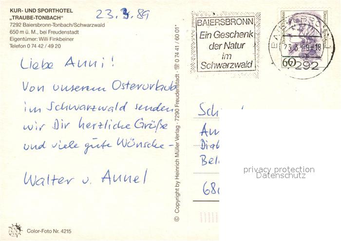 73083282 alte Postkarte Tonbach Hotel Traube Tonbach Winteraufnahme postalisch gelaufen Erhaltung siehe scans [KathaD81] KatCode: 11110008237004