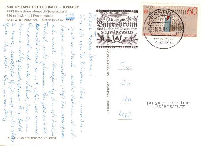 73109199 alte Postkarte Tonbach Kur Sporthotel Traube Tonbach postalisch gelaufen Erhaltung siehe scans [KathaD81] KatCode: 11110008237004