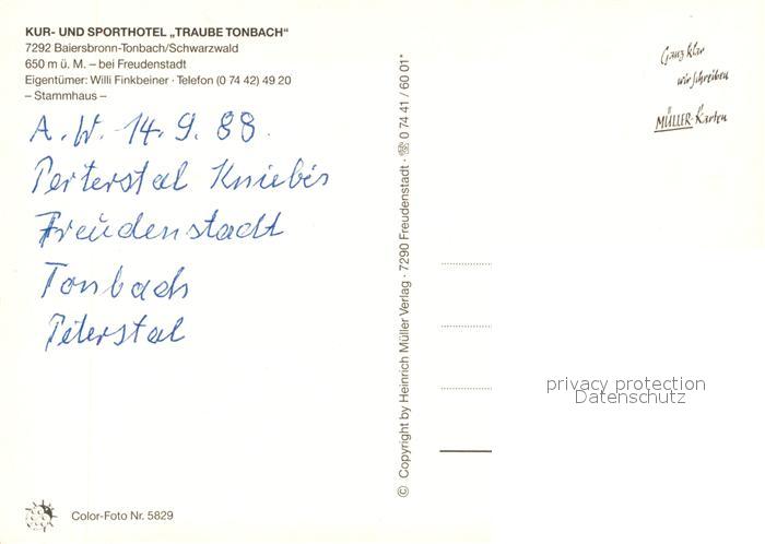 73321188 Tonbach Kur- und Sporthotel Traube Tonbach postalisch nicht gelaufen Erhaltung siehe scans [FriedD77] KatCode: 11110008237004
