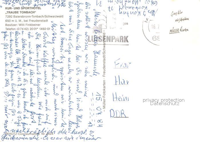 72947032 alte Postkarte Tonbach Kur- und Sporthotel Traube Tonbach postalisch gelaufen Erhaltung siehe scans [LiesaD40] KatCode: 11110008237004