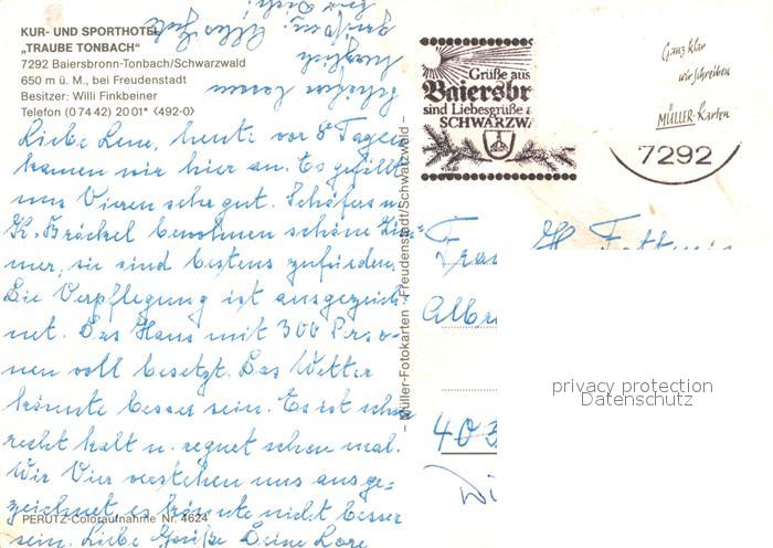 73311993 alte Postkarte Tonbach Kurhotel Traube Tonbach postalisch gelaufen Erhaltung siehe scans [NatalD47] KatCode: 11110008237004
