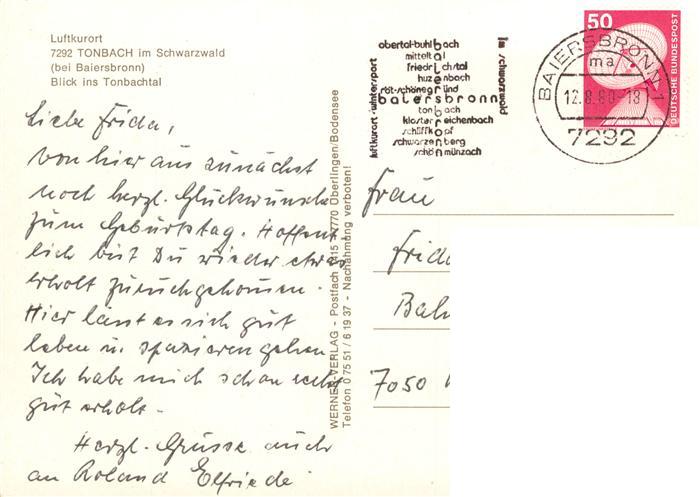 73899193 alte Postkarte Tonbach Panorama Blick ins Tonbachtal Schwarzwald postalisch gelaufen Erhaltung siehe scans [FriedD77] KatCode: 11110008237004