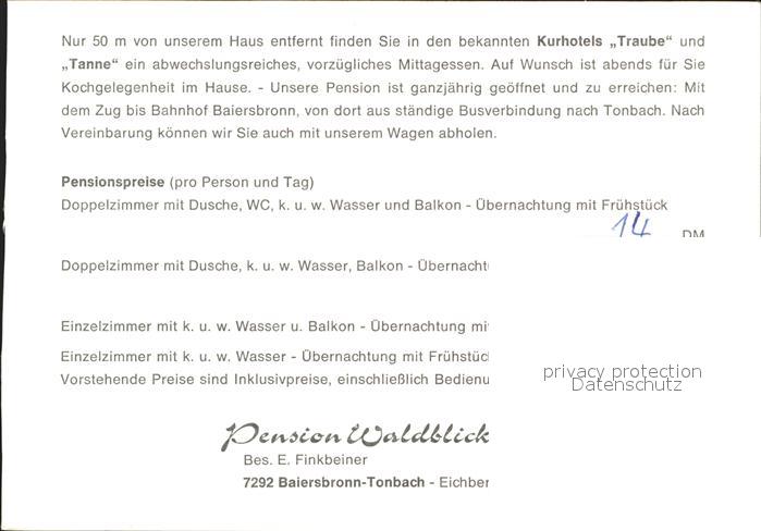 72320210 Tonbach Pension Waldblick postalisch nicht gelaufen Werbekarte (keine Postkarte) Erhaltung siehe scans KatCode: 11110008237004