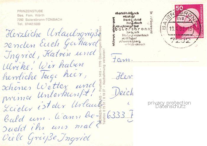 72915196 alte Postkarte Tonbach Prinzenstube postalisch gelaufen Erhaltung siehe scans [LiesaD40] KatCode: 11110008237004