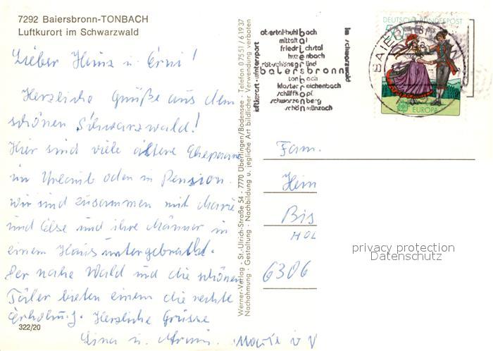 73127381 alte Postkarte Tonbach Teilansichten Luftkurort im Schwarzwald postalisch gelaufen Erhaltung siehe scans [FriedD77] KatCode: 11110008237004