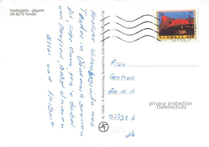 74044191 old postcard Tonder DK Vestergade gagade Fussgaengerzonen postalisch gelaufen Erhaltung siehe scans [WerneD78] KatCode: 11100