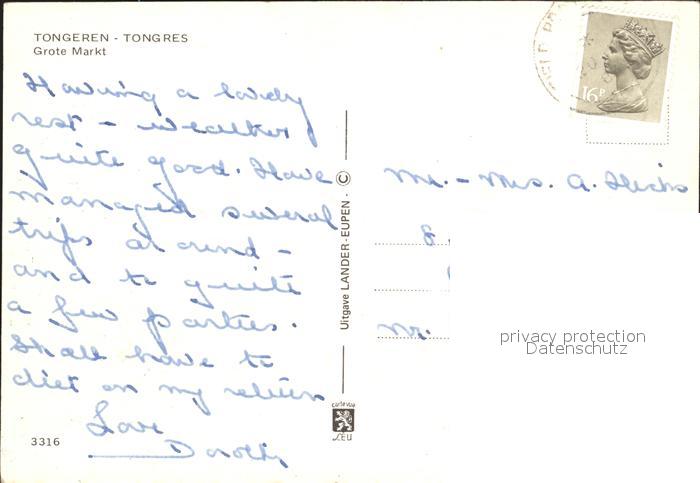 72107143 carte postale Tongeren Grote Markt postalisch gelaufen Erhaltung siehe scans KatCode: 11070073000632