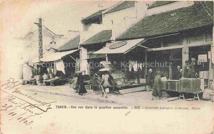 74059288 old postcard Tonkin Region Hanoi Vietnam Une rue dans le Quartier annamite postalisch gelaufen Erhaltung siehe scans [FriedD77] KatCode: 12280
