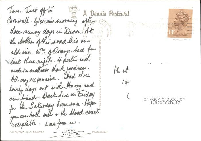 old postcard Topsham Exeter Dutch Houses postalisch gelaufen Erhaltung siehe scans