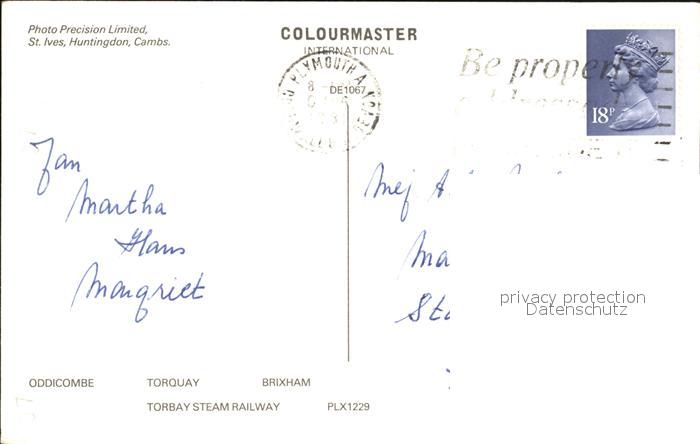 old postcard Torbay Oddicombe Torquay Brixham Steam Railway postalisch gelaufen Erhaltung siehe scans