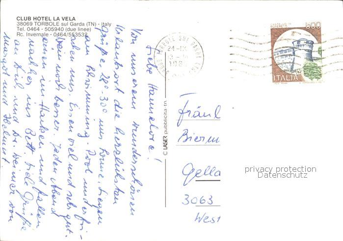 old postcard Torbole Lago di Garda Club Hotel La Vela postalisch gelaufen Erhaltung siehe scans