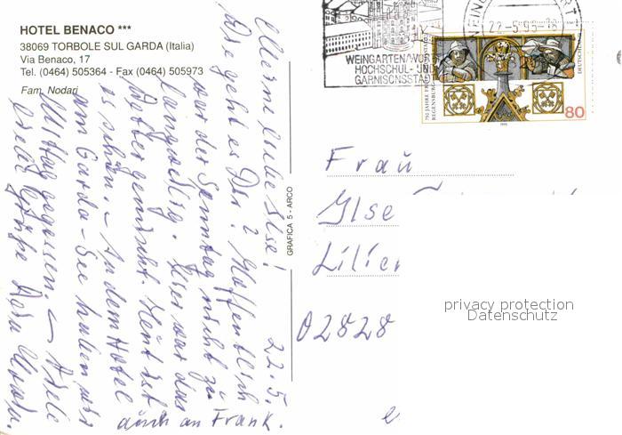 old postcard Torbole Lago di Garda Hotel Benaco Panorama Kueste postalisch gelaufen Erhaltung siehe scans [FriedD77]
