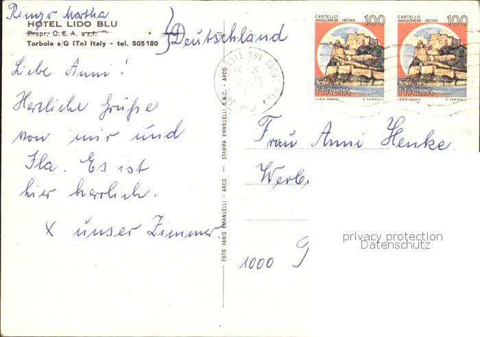 old postcard Torbole Lago di Garda Hotel Lido Blu Surfschule postalisch gelaufen Erhaltung siehe scans