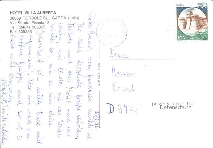 old postcard Torbole Lago di Garda Hotel Villa Alberta Surfen postalisch gelaufen Erhaltung siehe scans