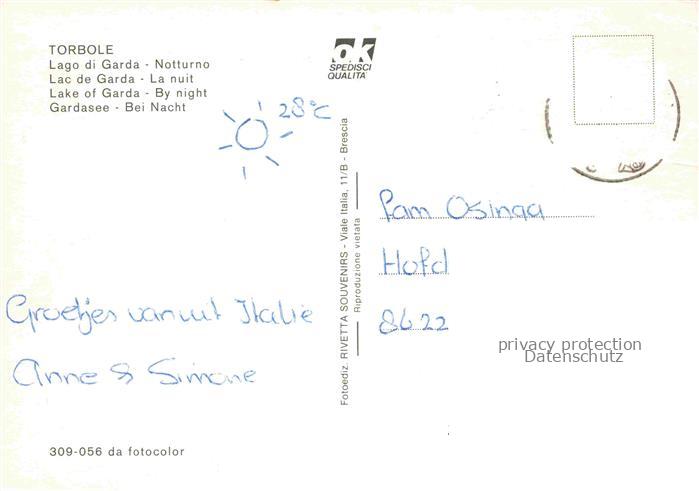 74005883 old postcard Torbole Lago di Garda IT Notturno postalisch gelaufen Erhaltung siehe scans [WerneD78] KatCode: 11240