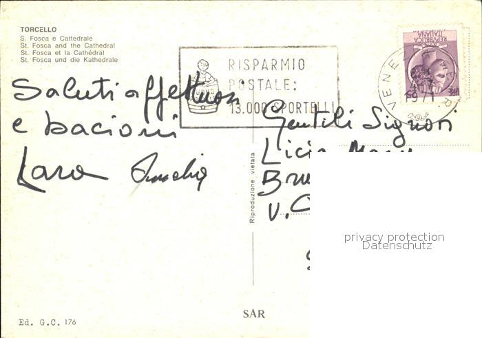 old postcard Torcello S Fosca e Cattedrale postalisch gelaufen Erhaltung siehe scans