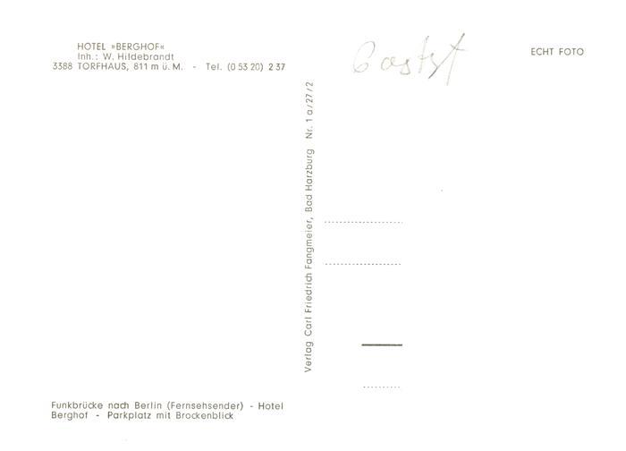 73886391 Torfhaus Altenau Harz Hotel Berghof Fernsehsender Parkplatz mit Brockenblick postalisch nicht gelaufen Erhaltung siehe scans [FriedD77] KatCode: 11110003153001