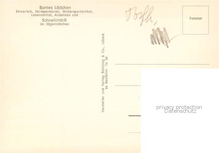 73764378 Torfhaus Harz Buntes Laedchen Schnellimbiss im Jaegerstuebchen postalisch nicht gelaufen Erhaltung siehe scans [FriedD77] Frie Katcode 11110003153001