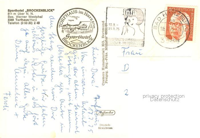 73758451 alte Postkarte Torfhaus Harz Fliegeraufnahme Sporthotel Brockenblick postalisch gelaufen Erhaltung siehe scans [LiesaD40] KatCode: 11110003153001