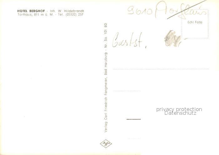 73162480 Torfhaus Harz Hotel Berghof postalisch nicht gelaufen Erhaltung siehe scans [WerneD78] KatCode: 11110003153001