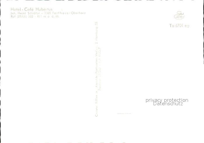 72085278 Torfhaus Harz Hotel Cafe Hubertus postalisch nicht gelaufen Erhaltung siehe scans KatCode: 11110003153001