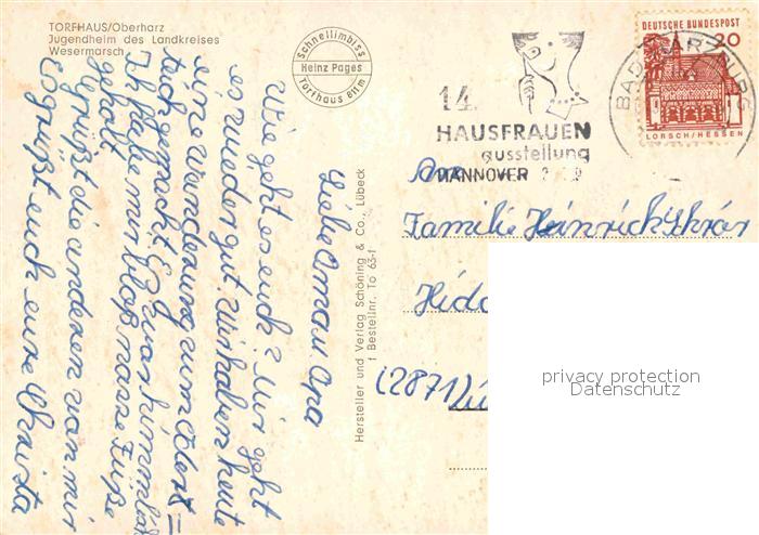 72889104 alte Postkarte Torfhaus Harz Jugendheim des Landkreises Wesermarsch postalisch gelaufen Erhaltung siehe scans [LiesaD40] KatCode: 11110003153001